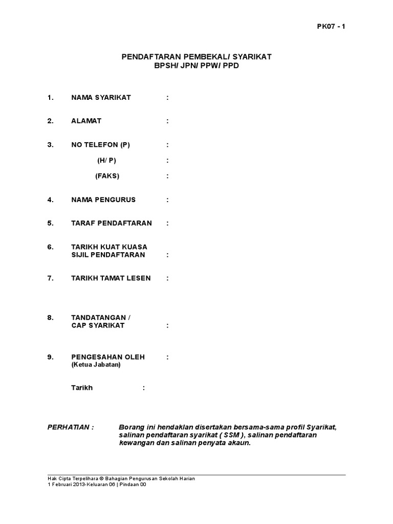 Pendaftaran Pembekal Syarikat Pdf