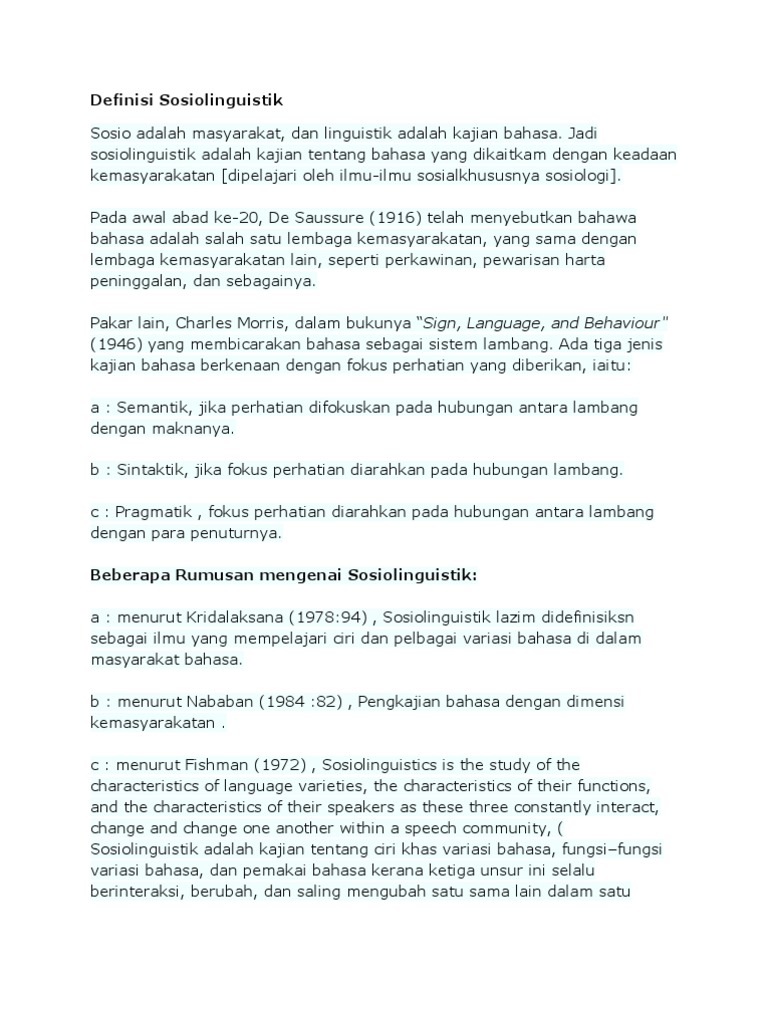 Definisi Sosiolinguistik Pdf