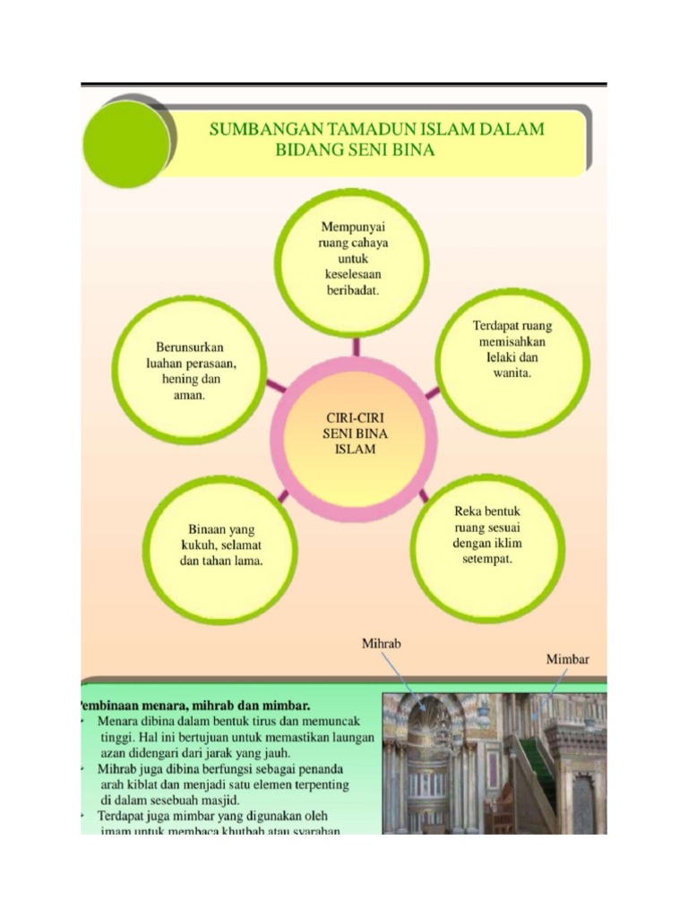 Seni bina islam di Andalusia mempunyai ciri-ciri tersendiri seperti yang dinyatakan oleh Titus Burkhardt iaitu luahan perasaan keamanan ketenangan dan keheningan merupakan cirri-ciri yang diterapkan dalam seni bina islam. Manakala manusia hanya diberi ruang untuk memilih cara bagaimana untuk mengecapi matlamat tersebut. Ke Arah Pengartikulasian Yang Sepadu menyatakan bahawa pada abad ke-21 negara menghadapi cabaran dalaman dan luaran akibat daripada kesan globalisasi liberalisasi dan perkembangan Teknologi.